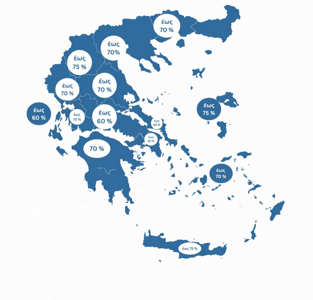 Τα ποσοστά ενίσχυσης, σύμφωνα με τον νέο Χάρτη Περιφερειακών Ενισχύσεων, διαμορφώνονται ως εξής: